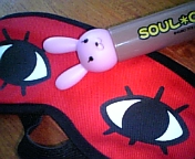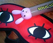 すっかり打ち解けたチャッピーと沖田さん。水道橋のジャンプショップでうっかり買っちゃった。このアイマスクして夜行列車で寝てましたが何か?