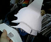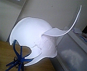 ↑こんな感じ。これ厚さ3ミリあるのだけれど、カッターで切断できるし、楽に削れるし、これはいい。ウルさん仮面もう諦めようかとベソかいてたときに見つけたのでもう狂喜乱舞しながら作って(遊んで)ました。わーいツノが折ーれーなーいー(´∀`)♪ウッヒヒヒ